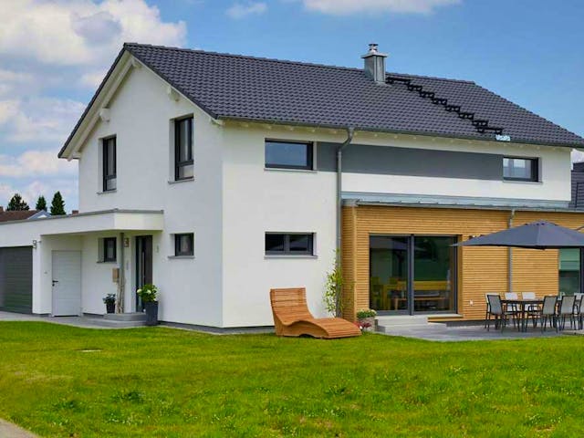 Sie können die Vorteile von Massiv- und Fertighaus kombinieren: mit einem Massiv-Fertighaus. Dabei handelt es sich um eine Kombination aus massivem Mauerwerk und industriell produzierten Fertigbauteilen. Diese lassen sich auch aus Leichtbeton, Ziegel oder Porenbeton herstellen.