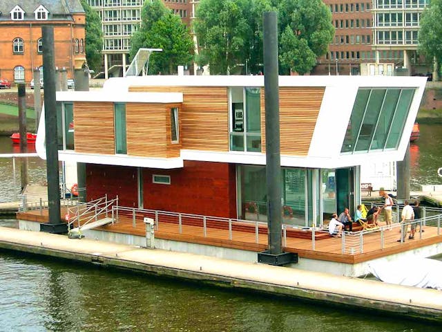 - Bei den meisten festen Domizilen handelt es sich um schwimmende Häuser. Anders als Hausboote können sie nicht bewegt werden, sondern ruhen auf einem Ponton.